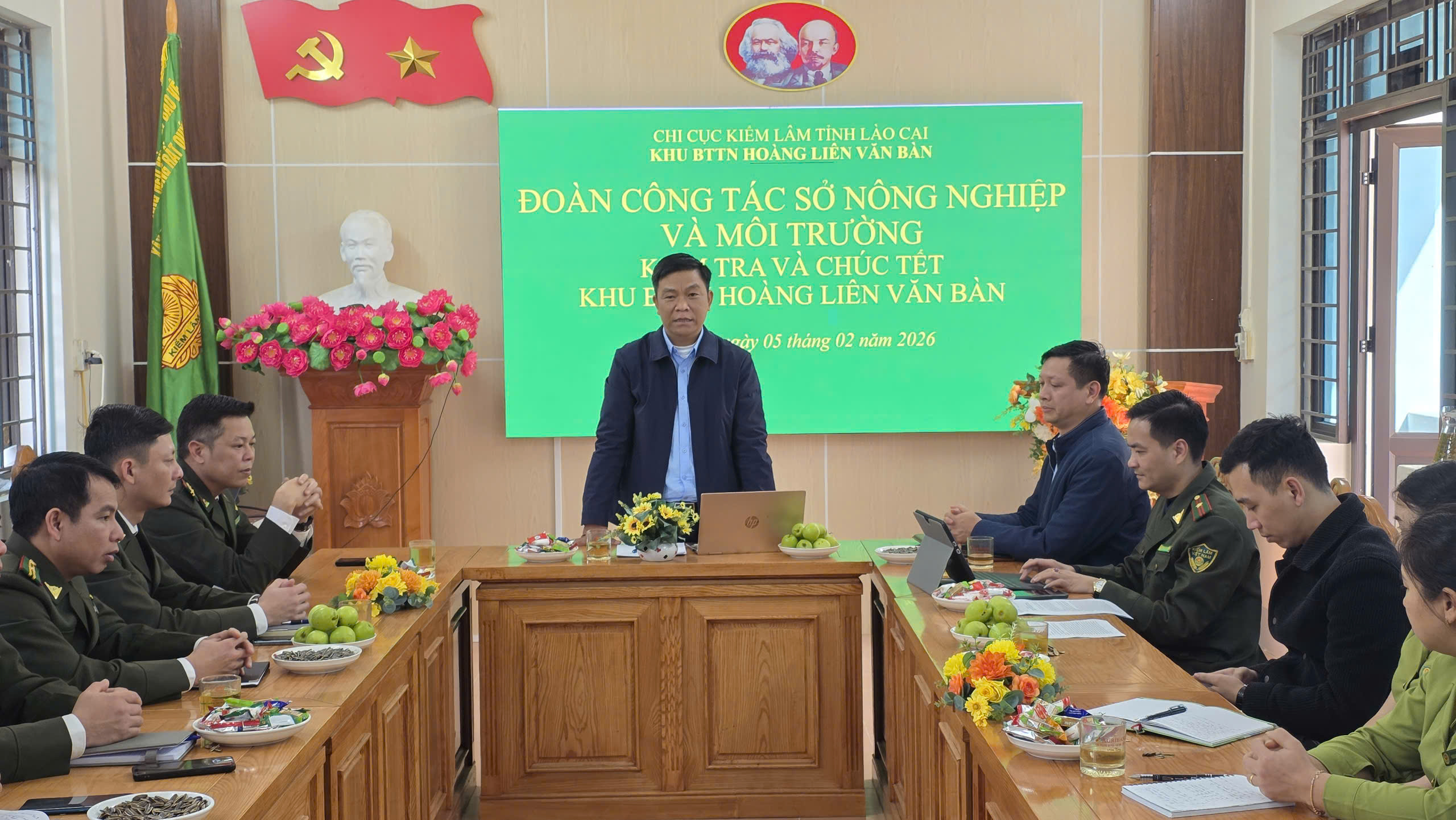 Trước thềm tết Nguyên đán Bính Ngọ 2026, ngày 05/02/2026, Đồng chí Nguyễn Thái Bình - Phó Giám đốc Sở Nông nghiệp và Môi trường tỉnh Lào Cai cùng các đồng chí lãnh đạo các Chi cục, phòng, ban trực thuộc Sở đã đến thăm, kiểm tra tình hình thực hiện nhiệm vụ và chúc Tết cán bộ, viên chức, người lao động Khu BTTN Hoàng Liên Văn Bàn.